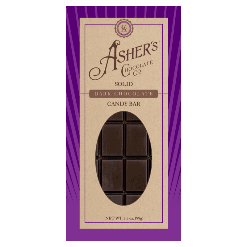 However, at Asher’s we also understand that sometimes simplicity is best. So, in working to keep our loyal fans happy, we decided to bring it back to the basics. Introducing Asher’s very own solid 3.5oz Dark Chocolate Bar. This Chocolate Bar is made with the original recipe our founder Chester A. Asher used to make his confections over 100 years ago. Just as our leader Chester taught, we still use only the finest and freshest ingredients. Above all, we guarantee Asher’s chocolate tastes unmatched to any competitor!