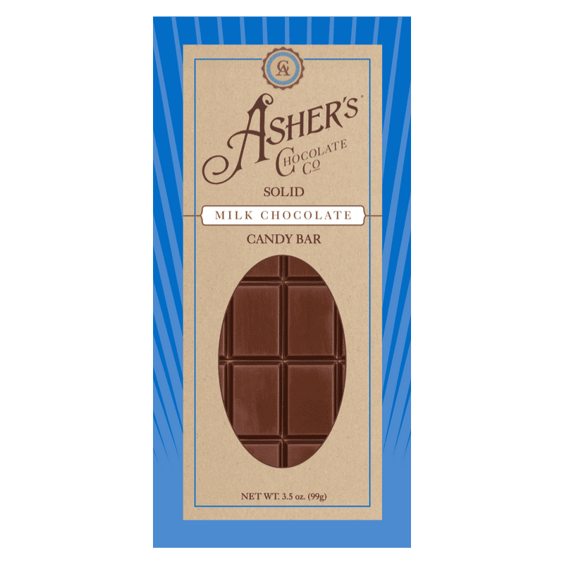 However, at Asher’s we also understand that sometimes simplicity is best. So, in working to keep our loyal fans happy, we decided to bring it back to the basics. Introducing Asher’s very own solid 3.5oz Milk Chocolate Bar. This Chocolate Bar is made with the original recipe our founder Chester A. Asher used to make his confections over 100 years ago. Just as our leader Chester taught, we still use only the finest and freshest ingredients. Above all, we guarantee Asher’s chocolate tastes unmatched to any competitor!