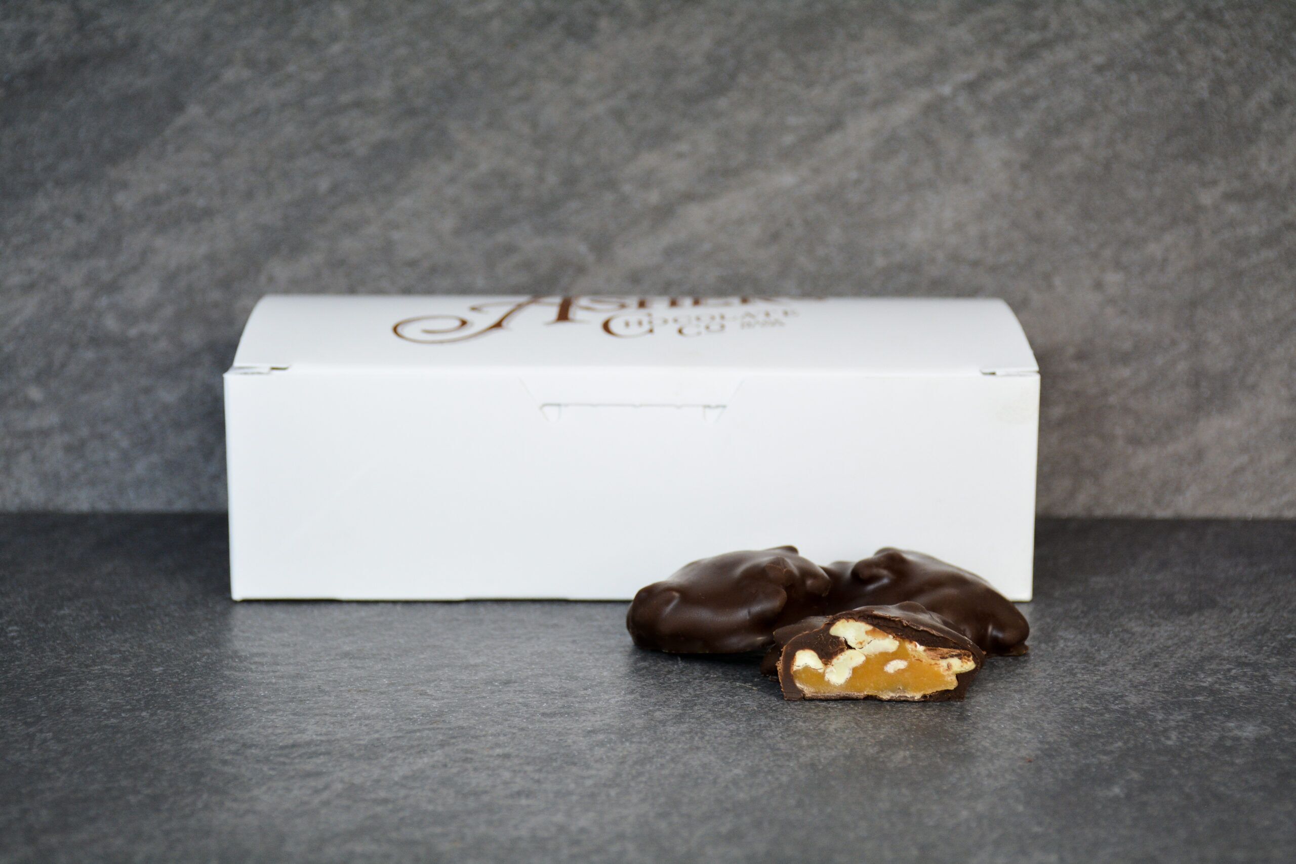 Whether you’re treating yourself to a blissful moment or sharing with loved ones, our Asher sure to impress. Order a one-pound box today and experience the perfect fusion of dark chocolate, cashews, and caramel. 🍫🌰🍯✨