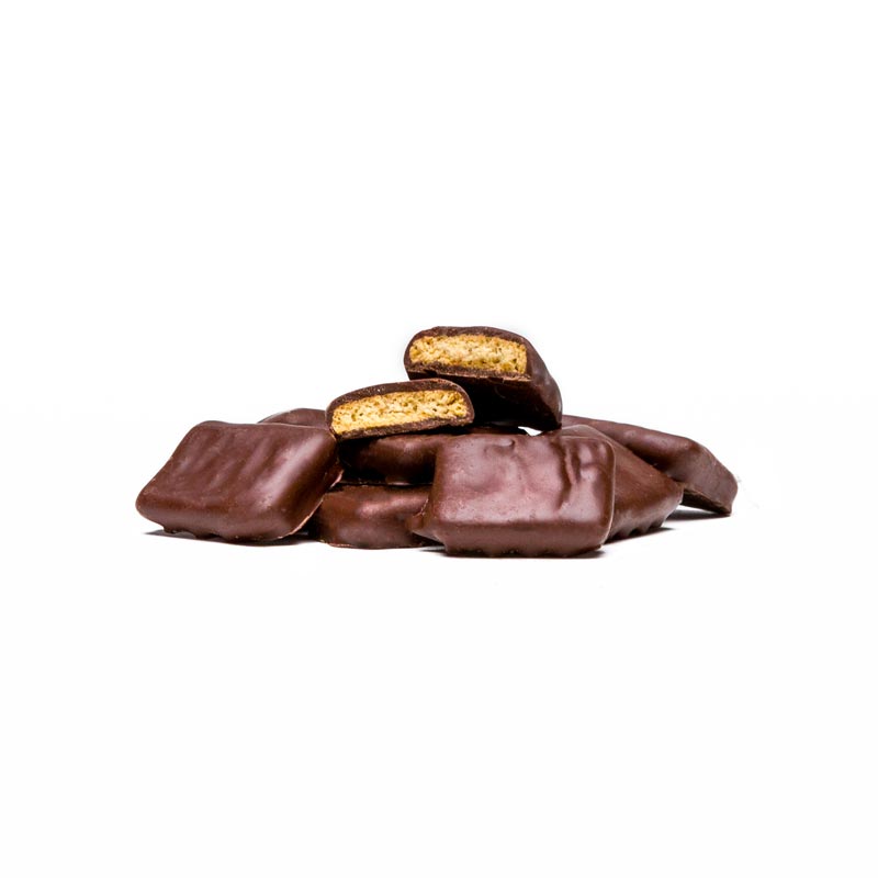 Are you ready to enjoy a snack that is so delicious you will not be able to eat just one? Our Graham Crackers might be mini! But they have a big flavor profile! Imagine your favorite crispy, golden graham cracker shrunken down to a bite size piece. Than, imagine one step further into coating that mini graham with rich dark chocolate. This treat is a dream come true! We pack a whole lot of Mini Grahams into one colorful Coffee Bag! Our Coffee Bags are resealable. So, you’ll be able to take these snacks anywhere! Even share a few with friends and family if you so choose. Our Coffee Bags make the perfect storage container! Because, we want to keep your chocolates fresh and tasting delicious upon every bite. Not that they are going to last forever! You can easily finish these treats in one sitting! But, just in case there are any left over we have you covered.
