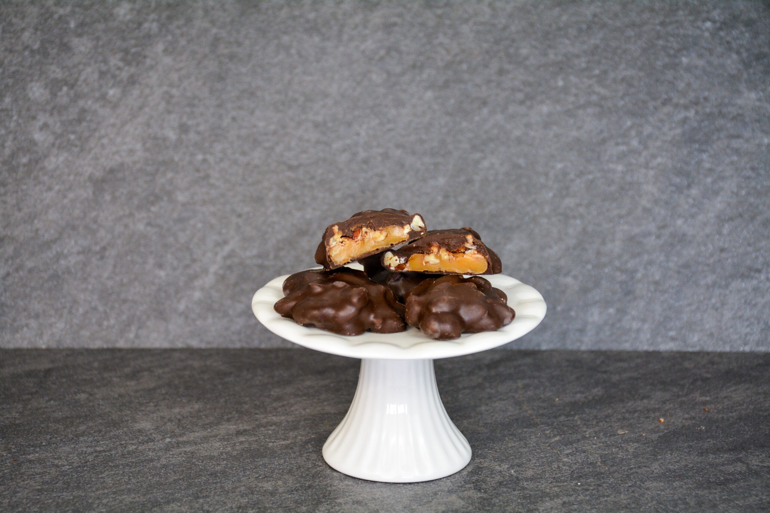 Indulge in Decadent Delight with Dark Chocolate Pecan Caramel Patties!