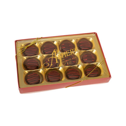 Artfully finished with a delicate drizzle of red string, these minty bites aren’t just delicious—they’re visually stunning. The contrast of dark chocolate and vibrant red adds a holiday-ready flair to any occasion.
