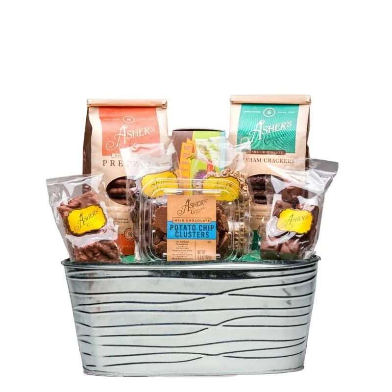 Indulgence knows no boundaries with Asher’s Snack Attack Gift Tin. This meticulously curated assortment is the ultimate celebration of all things sweet, savory, and utterly irresistible. Whether you’re treating yourself or surprising a loved one, this snack-filled tin is a taste sensation that will conquer your snack cravings.