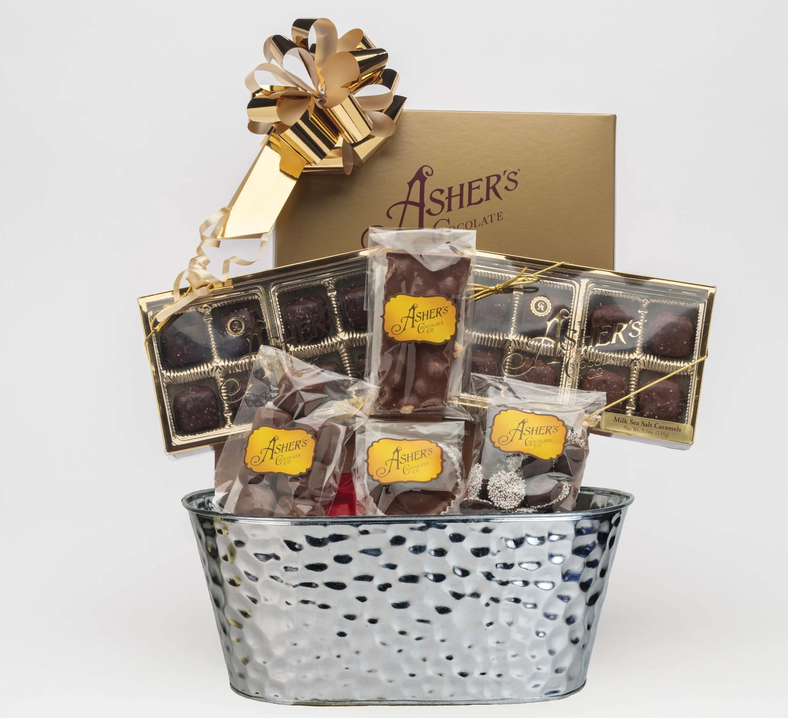 Give the gift of pure chocolate bliss with Asher’s Indulgence Gift Basket, a thoughtfully curated collection of our most beloved confections. Perfect for the holiday season, this basket brings together classic favorites and irresistible new indulgences—all beautifully arranged for gifting, sharing, or savoring solo.