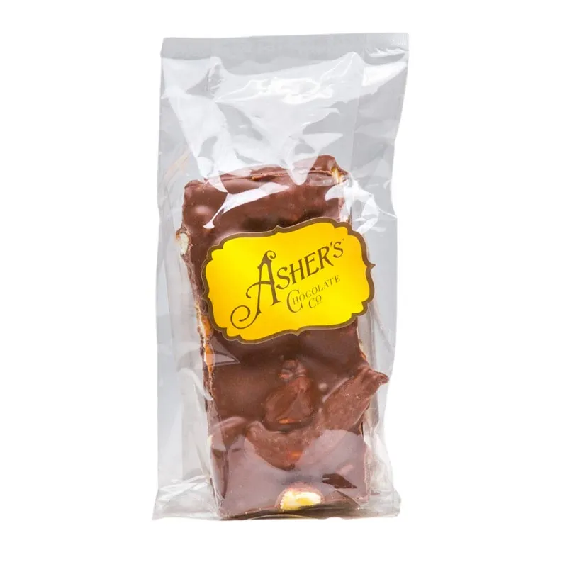 The Milk Chocolate Boardwalk Crunch from Asher’s Chocolate is four full ounces of some of the richest, most delicious chocolate covered items that you will ever have the pleasure of experiencing. Break off a chunk and watch as the sweet summer memories of years past come flooding back into your brain in the most delicious way possible. Especially, Enjoy creamy milk chocolate, buttered popcorn, marshmallows and more. Nuts and salty pretzels combine with the richest milk chocolate ever. It will certainly put you in that great summer, sunny mood. The moment the crunch hits your mouth, you’ll be instantly transported back in time to those beach vacations of your youth. Please note this product is not Kosher.