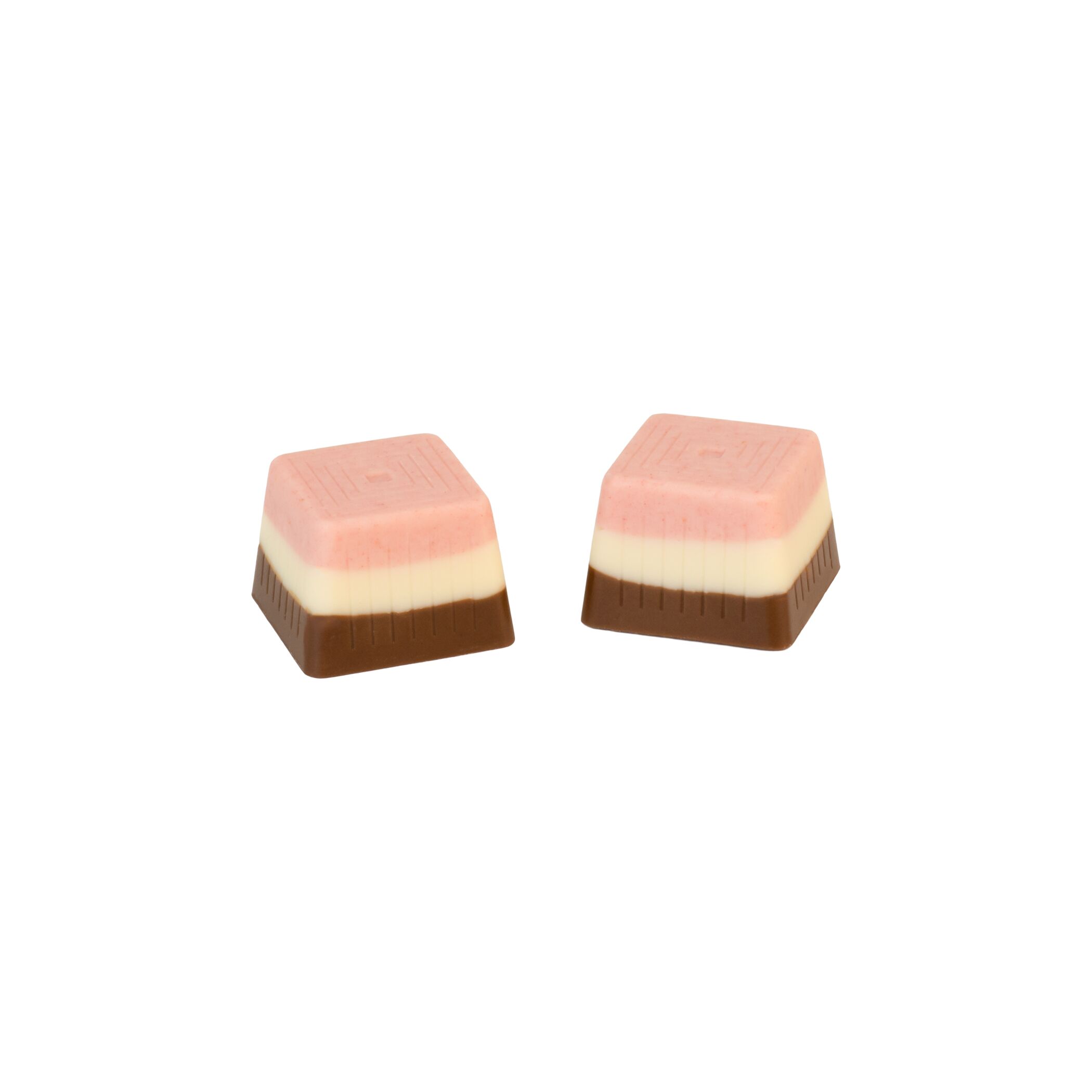 Topped with a burst of strawberry flavor, each bite delivers a fruity, refreshing twist that ties all three layers together in perfect harmony.