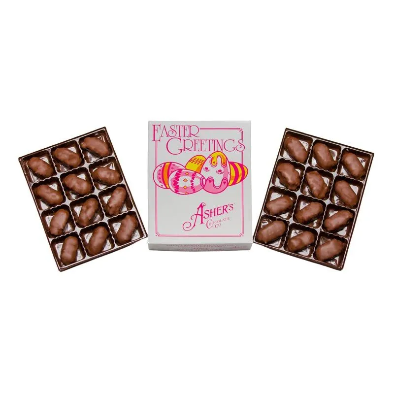 Your friends at Asher’s Chocolate Co. stand committed to being part of your family’s Easter traditions for many years and generations to come. Above all, supplying your favorite Easter confections makes us happy. And, everyone benefits from extra happiness, especially when that happiness is smothered in chocolate. So, back for the Spring season are Asher’s Old-Fashioned 24-pc. Coconut Cream Eggs- Milk Chocolate.