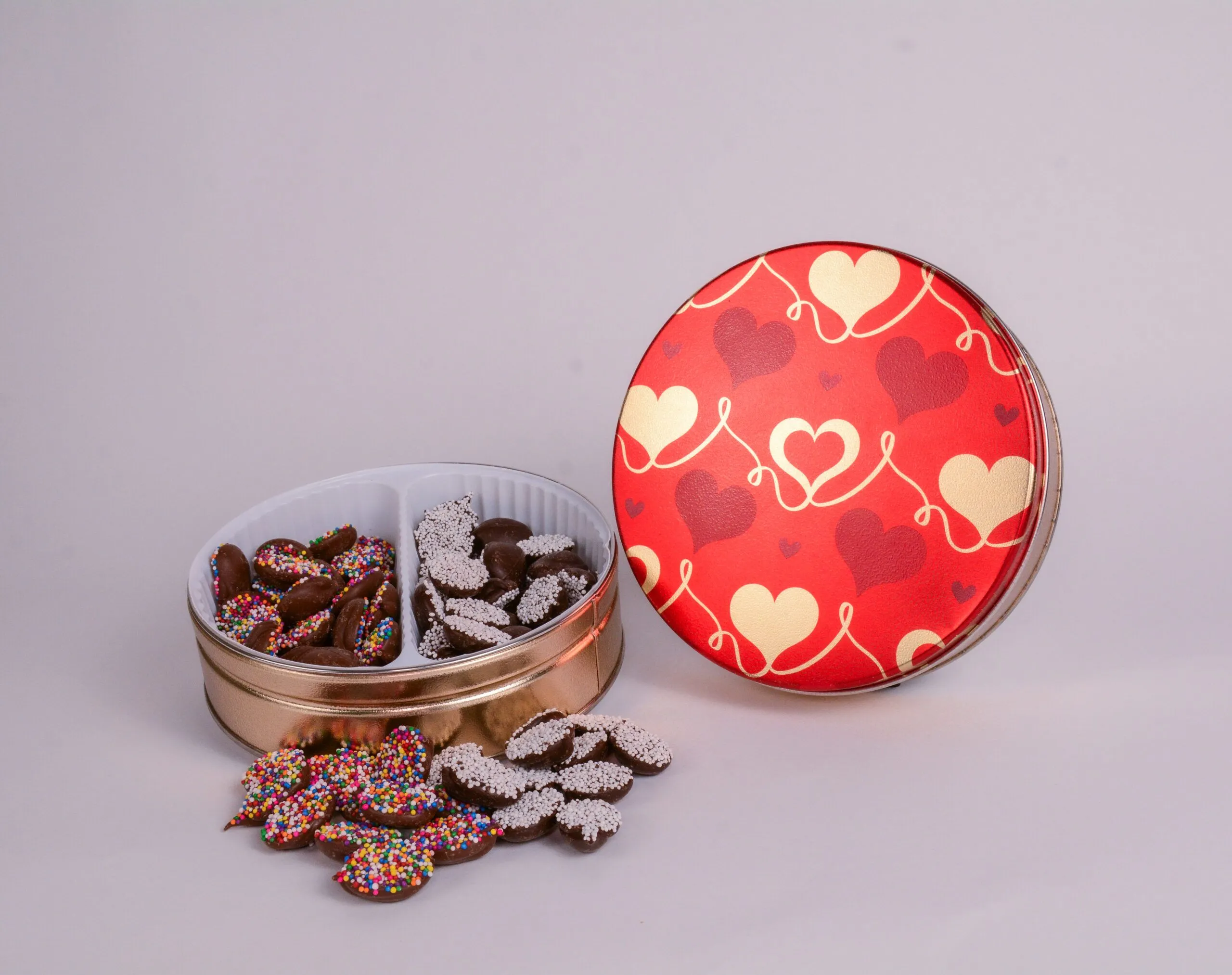 🎁 Elegant Red Tin: This Valentine’s Day, the candies come nestled in a collectible red tin. The tin is adorned with gold and silver hearts, adding an extra touch of romance to this delectable gift. The tin itself is not just a container but a keepsake, making it the perfect way to show your love.