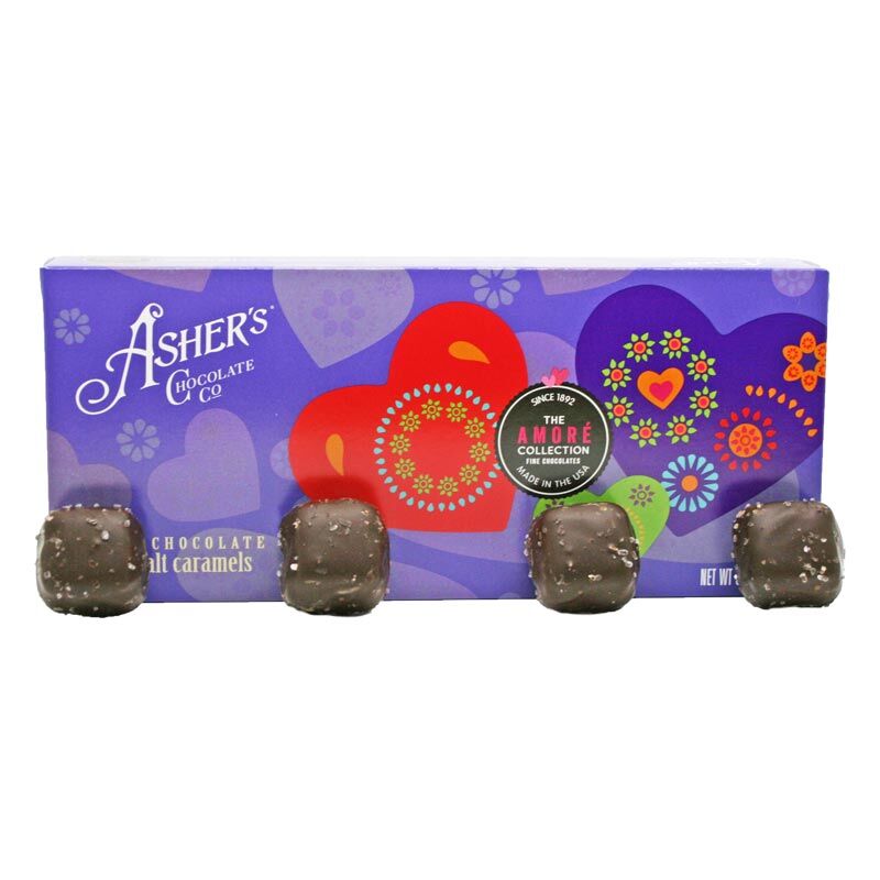 Every year, love and chocolate are in the air with our 8pc. Dark Chocolate Sea Salt Caramels boxes. But what is better than one box of Chocolates? The answer is TWO boxes of deliciously inspired flavors! That is why your family at Asher’s never stops working to create fun, new flavors. We know what it takes to spark the feelings of a sweet Valentine’s Day. This year it is all about Dark Chocolate Caramels!
