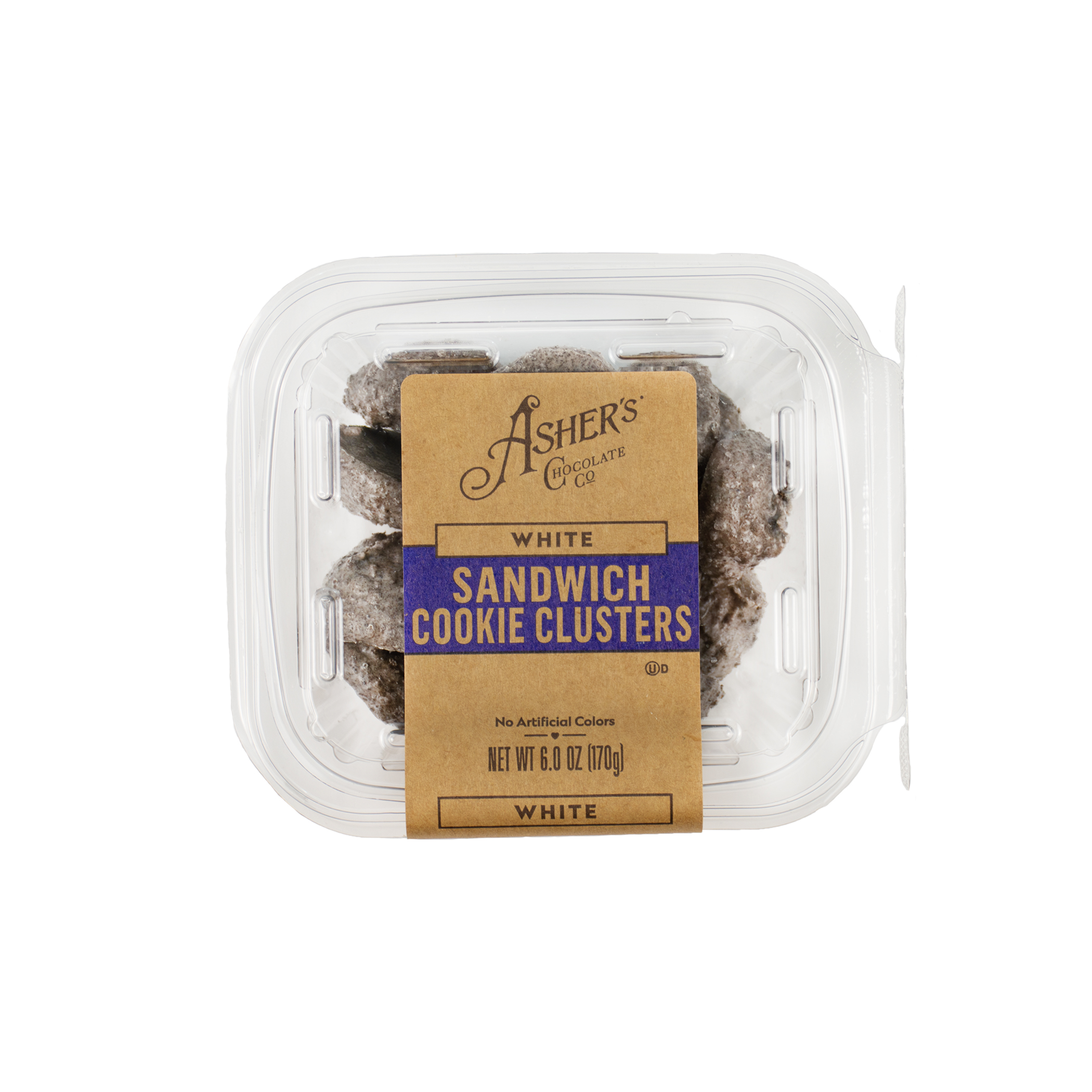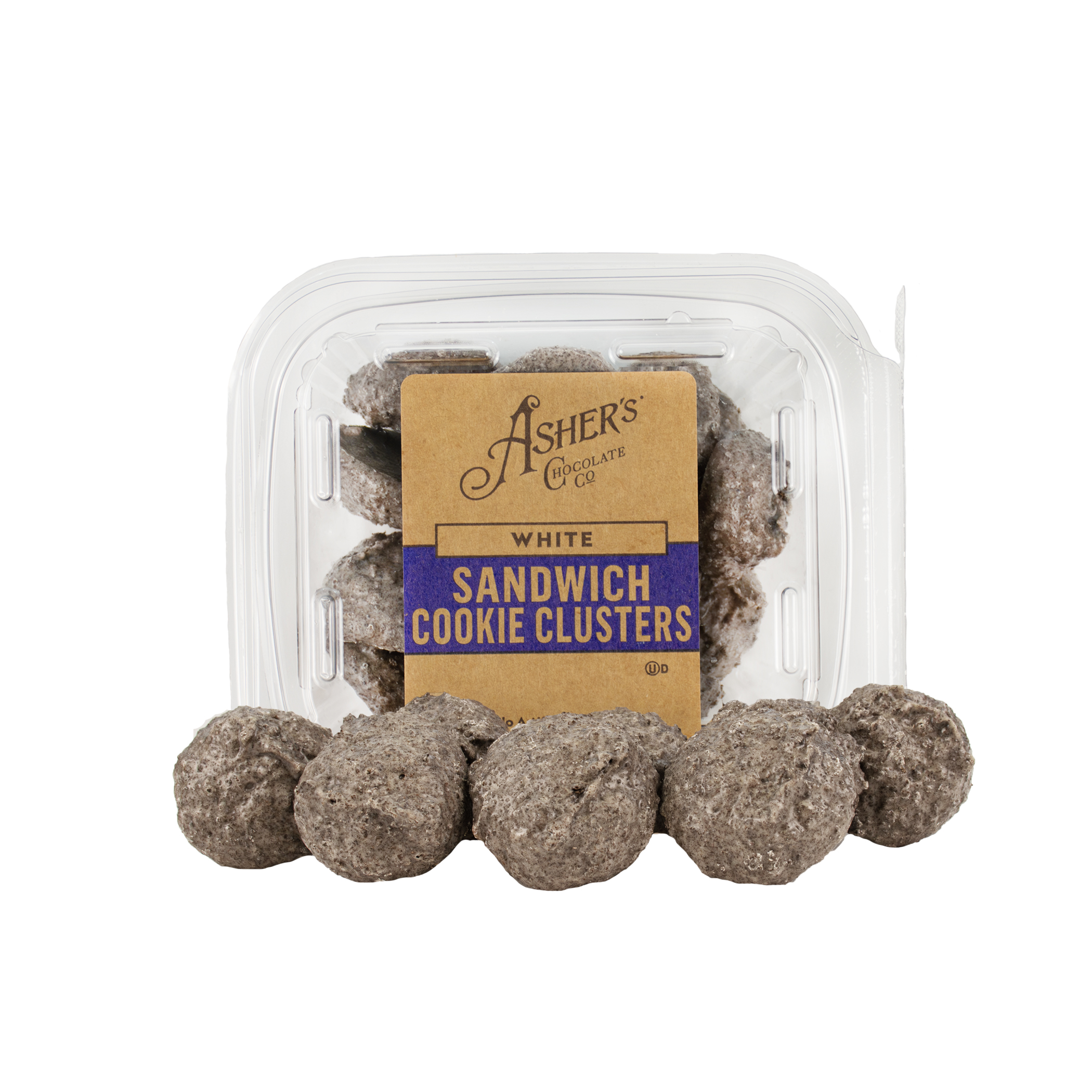 Experience the perfect blend of crunch and creaminess with Asher’s White Chocolate Cookie Clusters. These irresistible treats combine crisp sandwich cookies with our luxurious white chocolate to create a bite-sized indulgence you’ll love.
